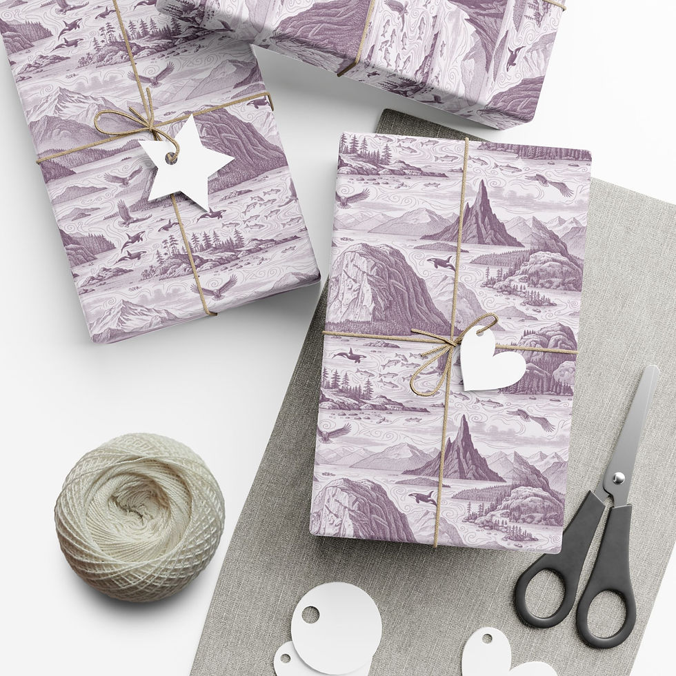 Squamish toile, mountain Gift Wrap Paper, Eco-Friendly Artistic Landscape Design